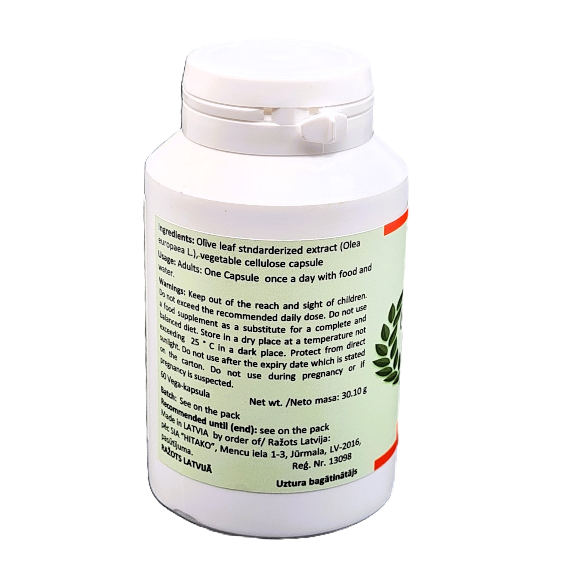 Standardoitu oliivinlehtiuute (Olea europaea L.), kasvisselluloosakapseli - hydroksipropyylimetyyliselluloosa.